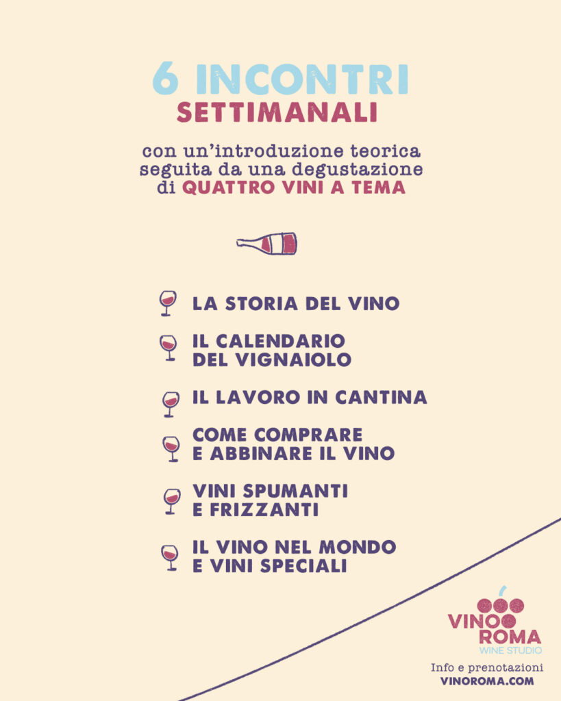 Questo è un corso pratico di 6 settimane, pensato per eliminare le pretese e i tecnicismi inutili che spesso circondano questo settore. Qui a VinoRoma crediamo che il vino debba essere accessibile: per questo abbiamo creato un programma che si concentra sull’essenza della viticoltura naturale, biologica e biodinamica, lontano dai soliti cliché.